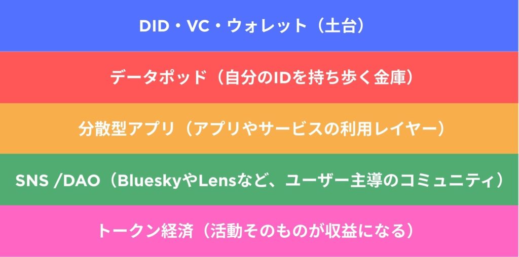この5つが積み上がって「新しい経済圏」が形成されており、すでに世界規模で拡大中です。