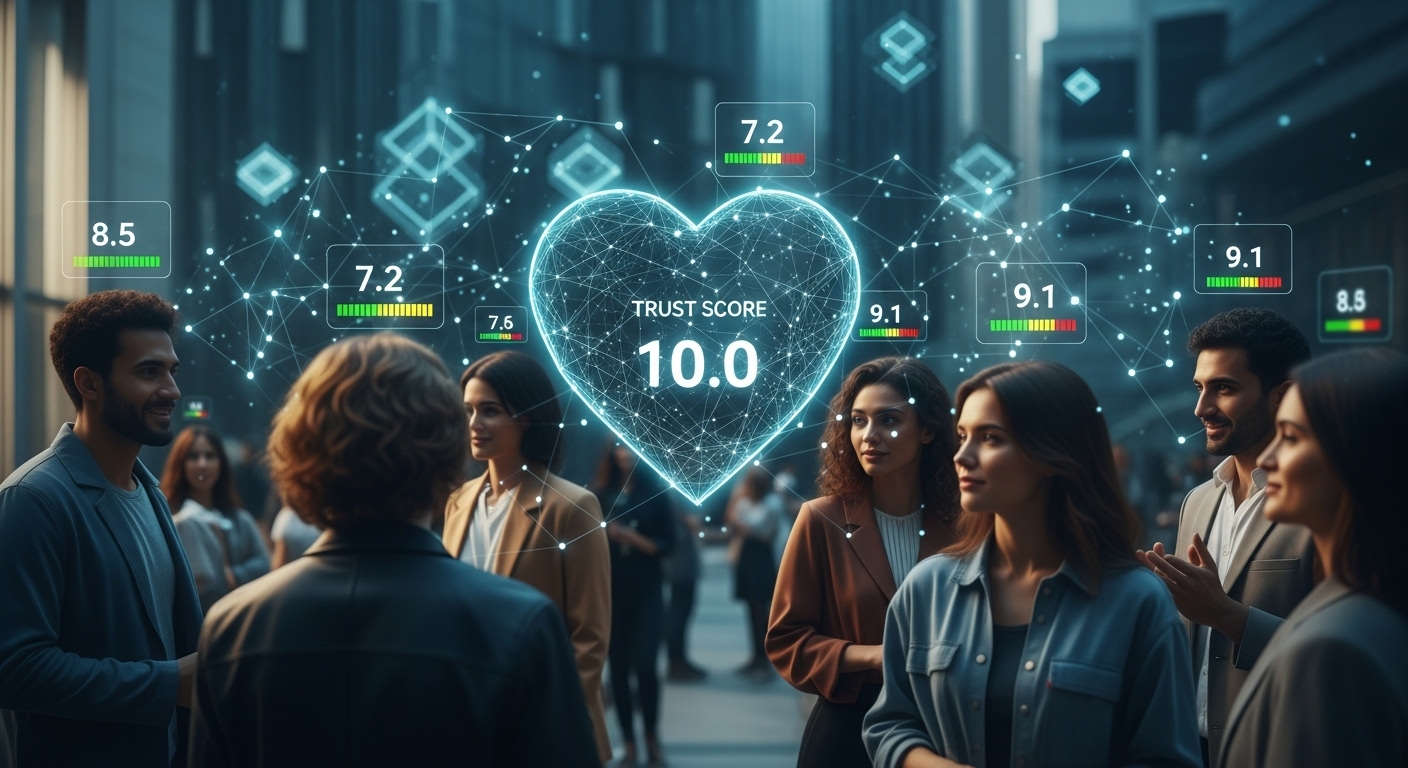 DIDで「誰が何をできる人なのか」が証明され、信用スコアで信頼の積み重ねが可視化される。